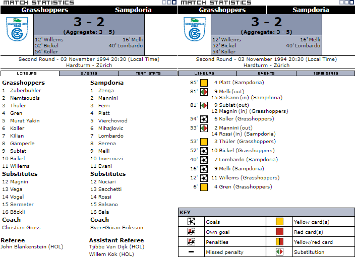 «Грассхоппер» Цюрих - «Сампдория» Генуя - 3:2