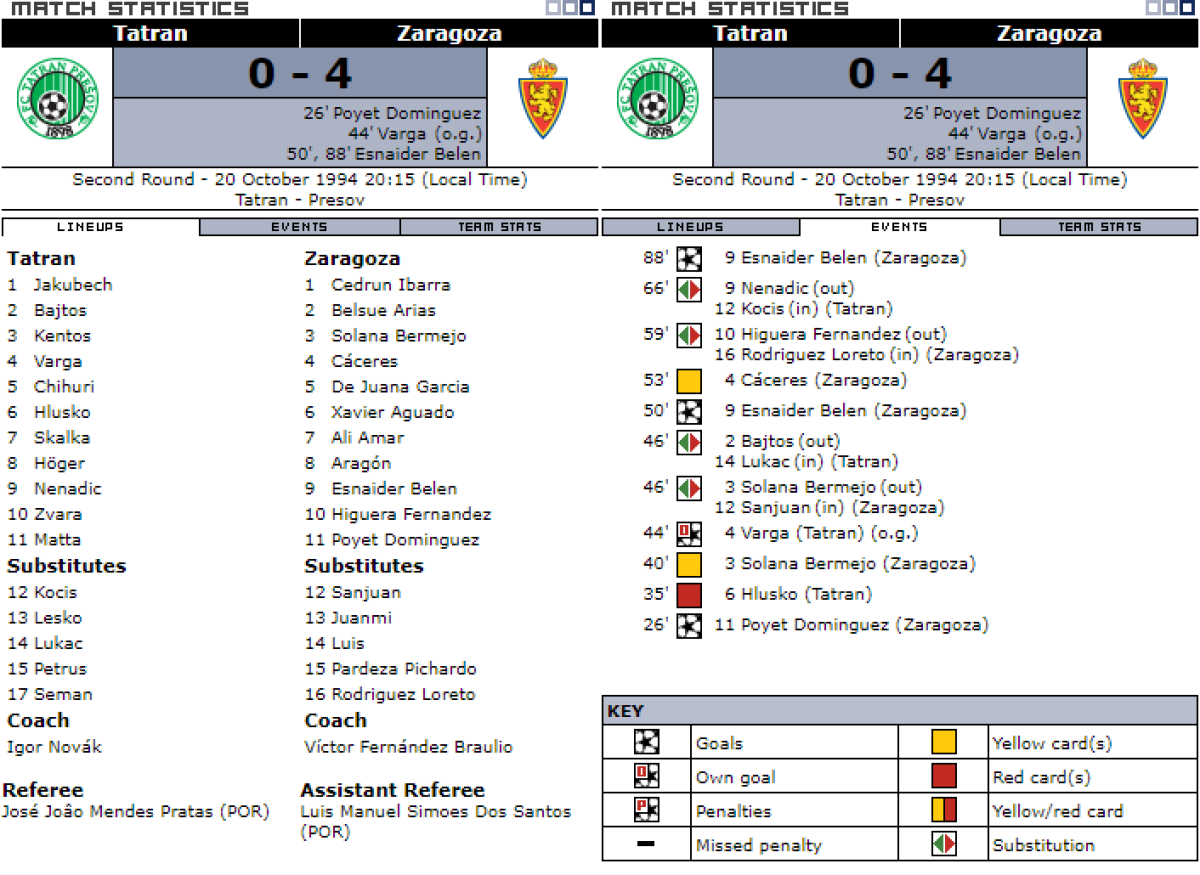 «Татран» Прешов - «Реал Сарагоса» Сарагоса - 0:4