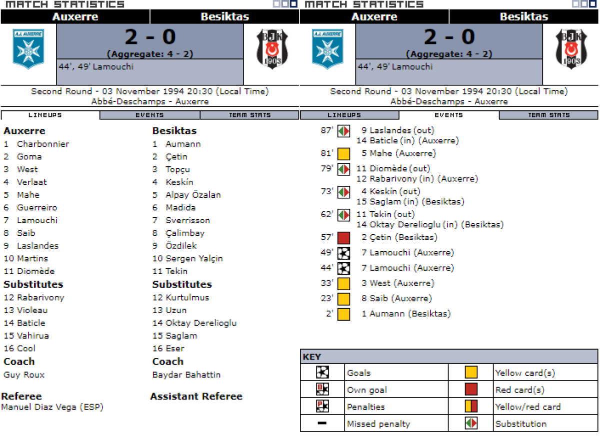 «Осер» Осер - «Бешикташ» Стамбул - 2:0