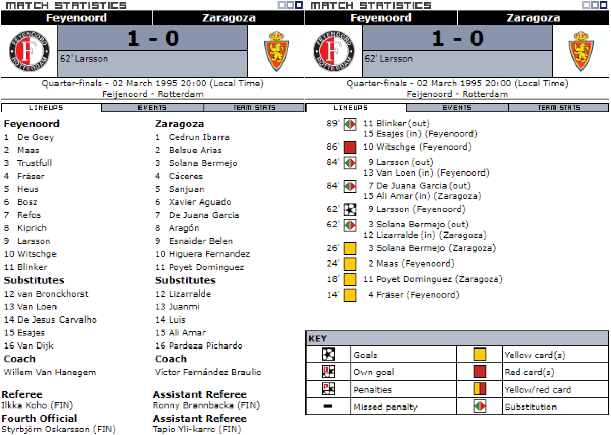 «Фейеноорд» Роттердам - «Реал Сарагоса» Сарагоса - 1:0