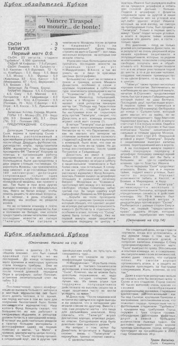 «Сьон» Сьон - «Тилигул» Тирасполь - 3:2