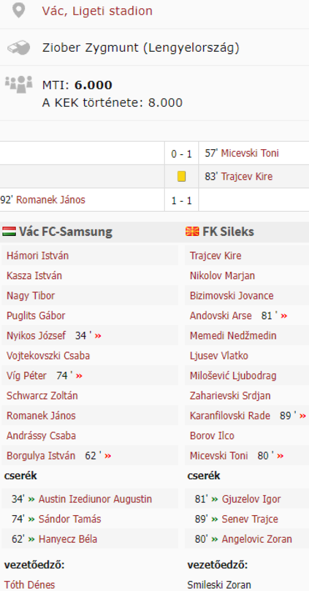 «Вац-Самсунг» Вац - «Силекс» Кратово - 1:1