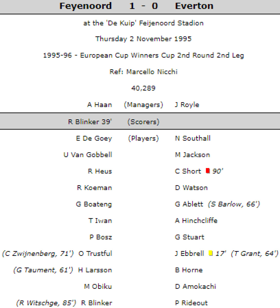 «Фейеноорд» Роттердам - «Эвертон» Ливерпуль - 1:0