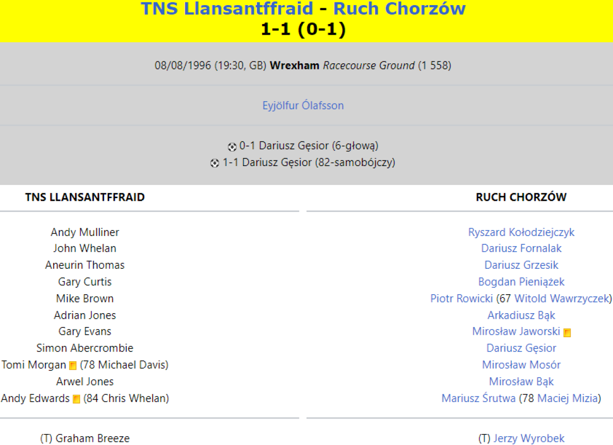 «Ллансантфрайд» Ллансантфрайд-ам-Мехайн - «Рух» Хожув - 1:1