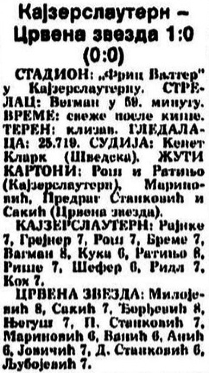 «1. ФК Кайзерслаутерн» Кайзерслаутерн - «Црвена Звезда» Белград - 1:0
