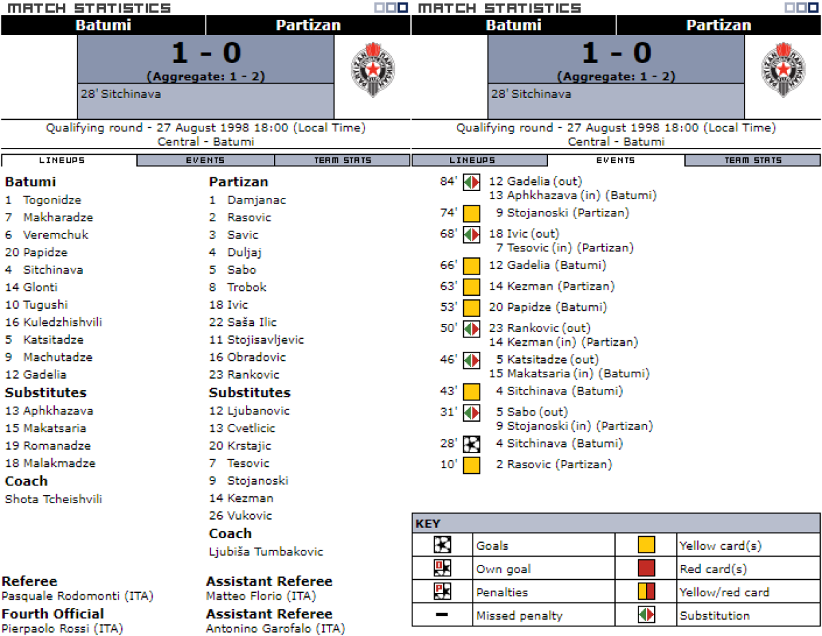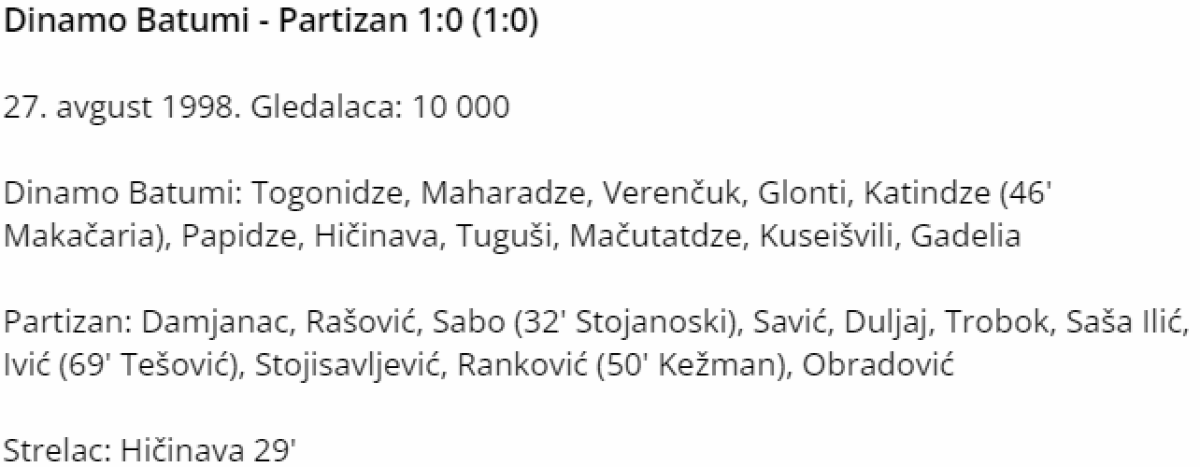 «Динамо» Батуми - «Партизан» Белград - 1:0
