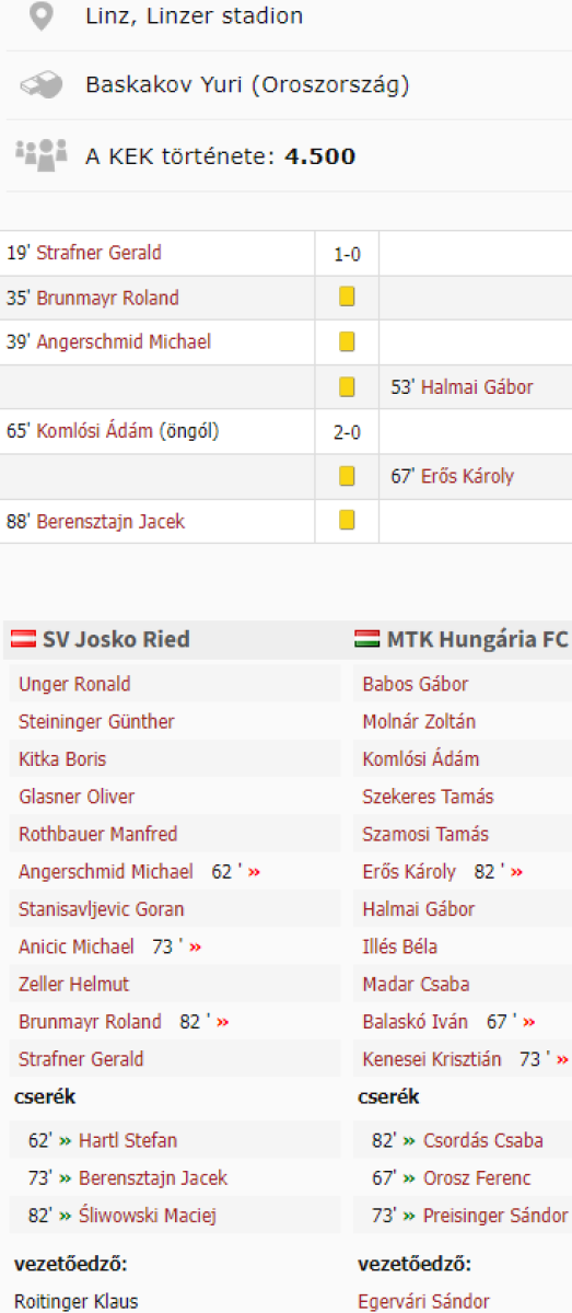«Рид» Рид-им-Иннкрайс - «МТК-Хунгарио» Будапешт - 2:0