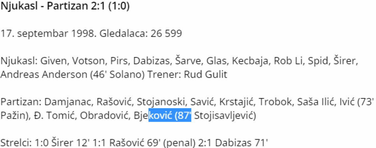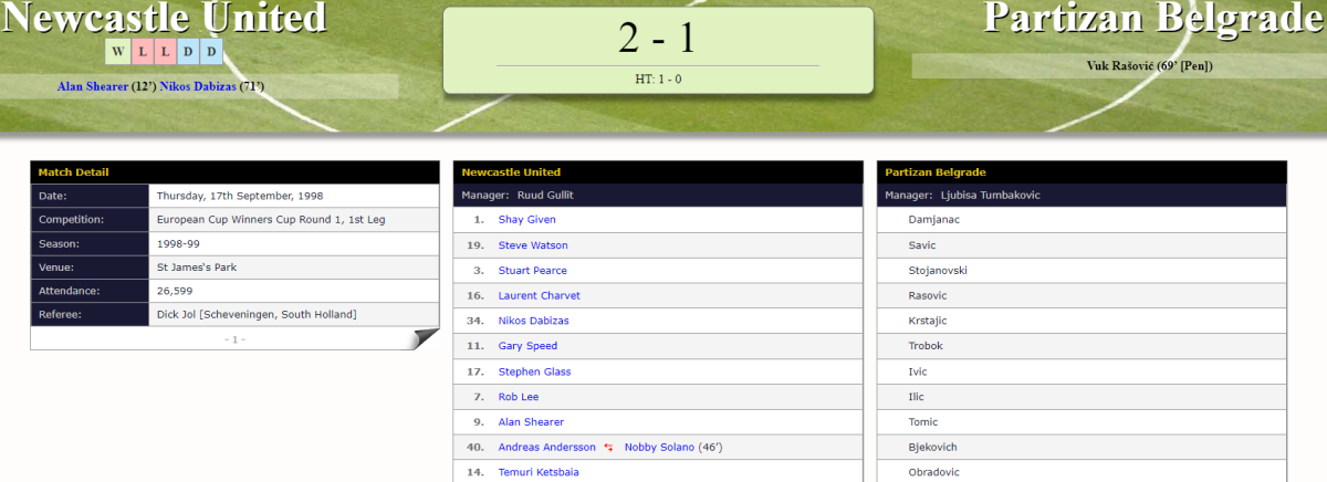 «Ньюкасл Юнайтед» Ньюкасл-апон-Тайн - «Партизан» Белград - 2:1