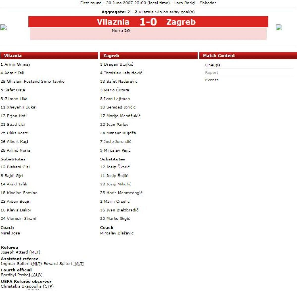 «Влазния» Шкодер - «Загреб» Загреб - 1:0