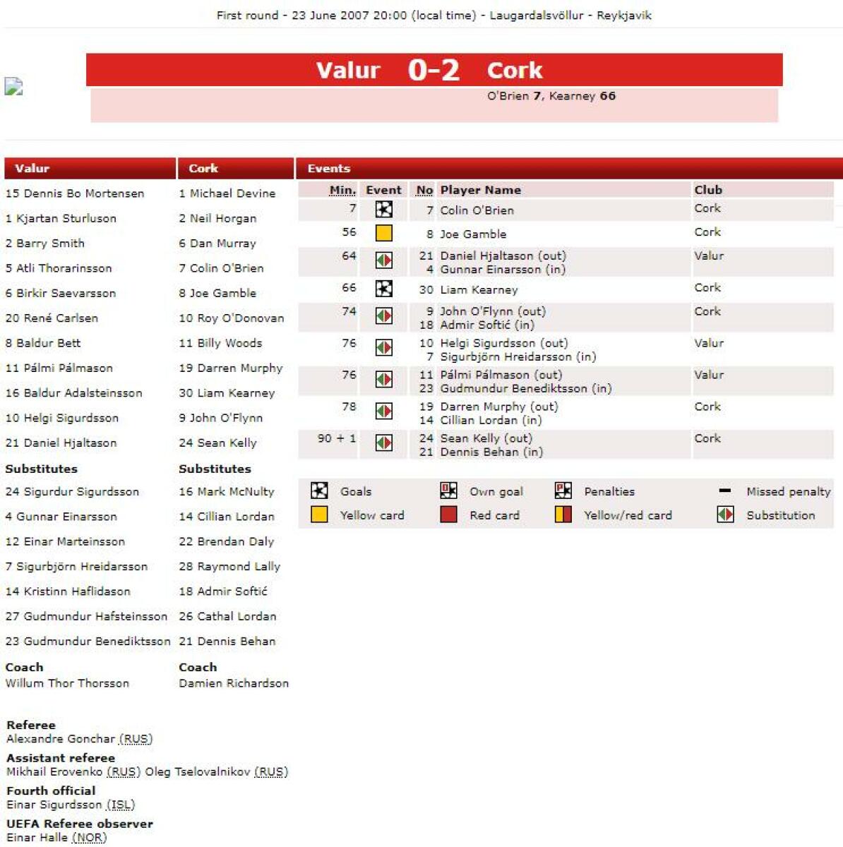 «Валюр» Рейкьявик - «Корк Сити» Корк - 0:2