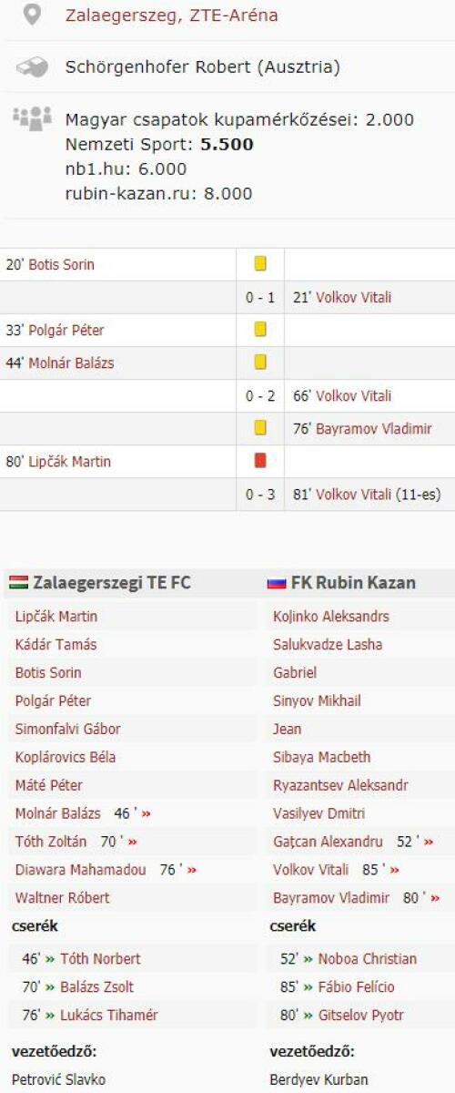 «Залаэгерсег» Залаэгерсег - «Рубин» Казань - 0:3