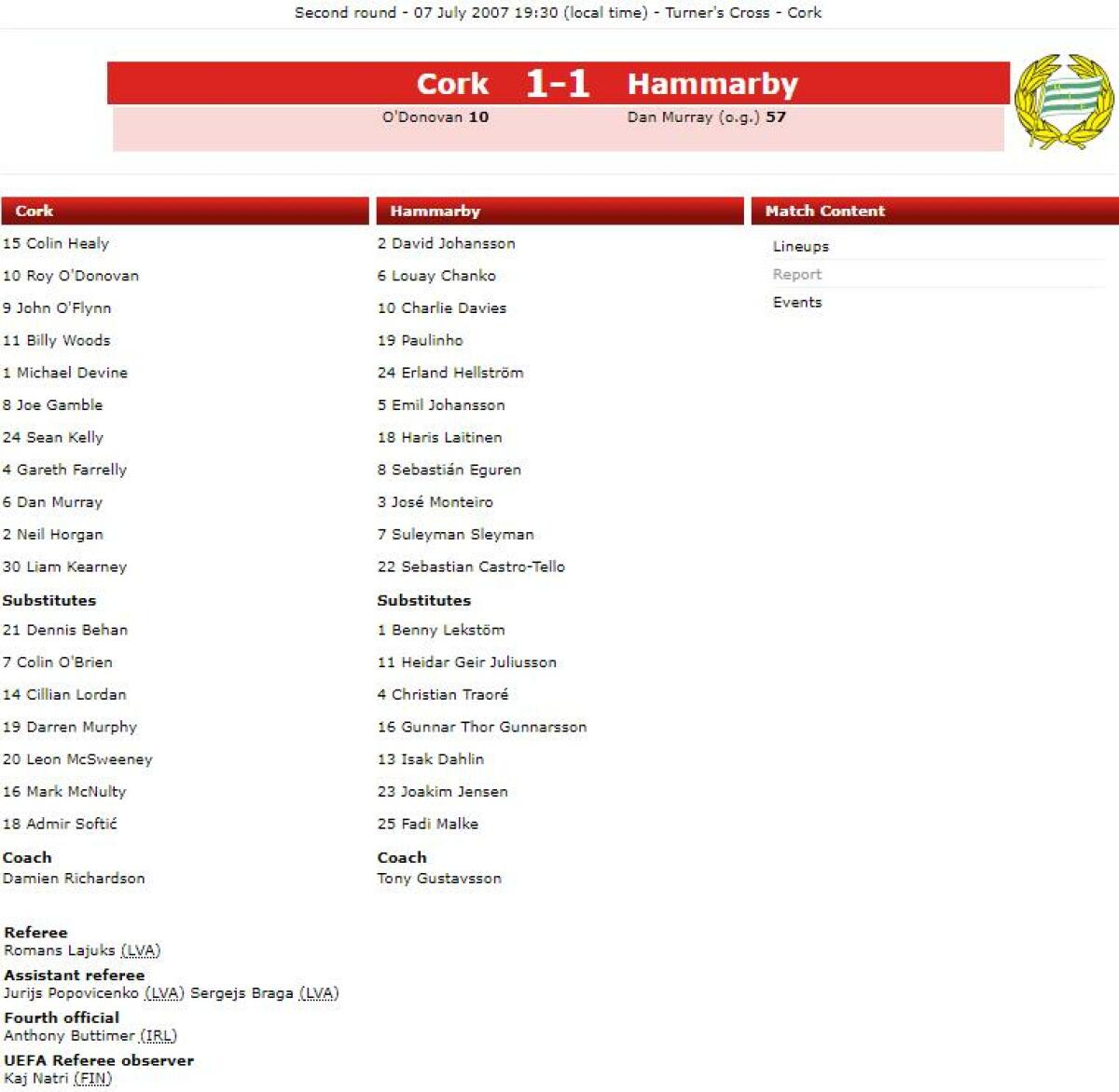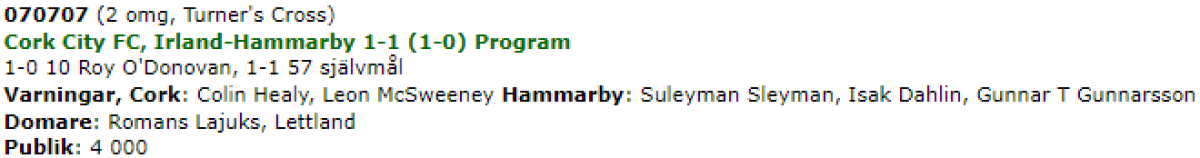 «Корк Сити» Корк - «Хаммарбю» Стокгольм - 1:1