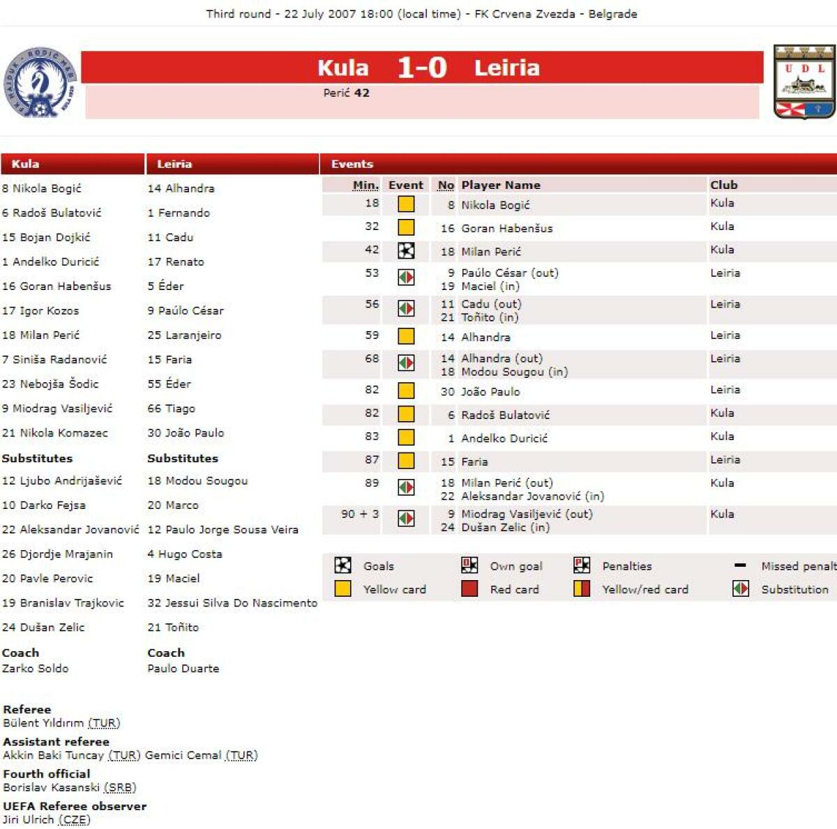 «Хайдук» Кула - «Лейрия» Лейрия - 1:0