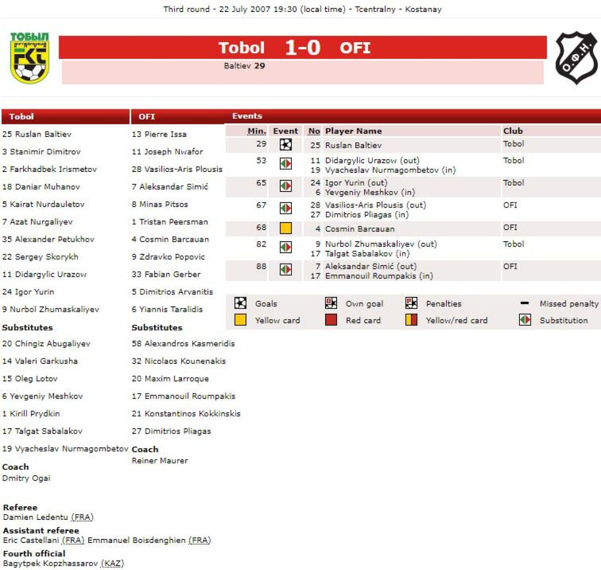«Тобол» Кустанай - ОФИ Ираклион - 1:0
