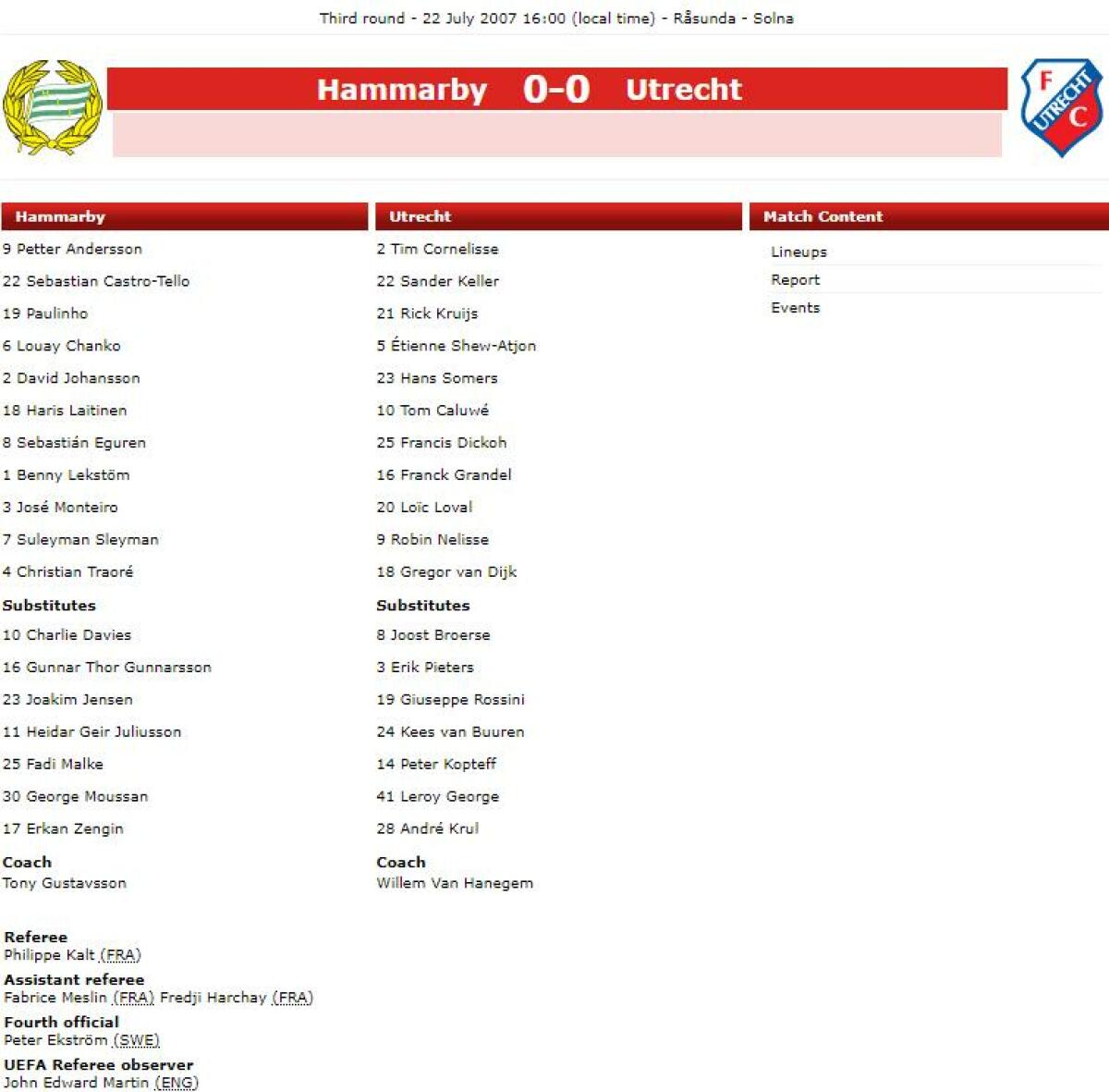 «Хаммарбю» Стокгольм - «Утрехт» Утрехт - 0:0