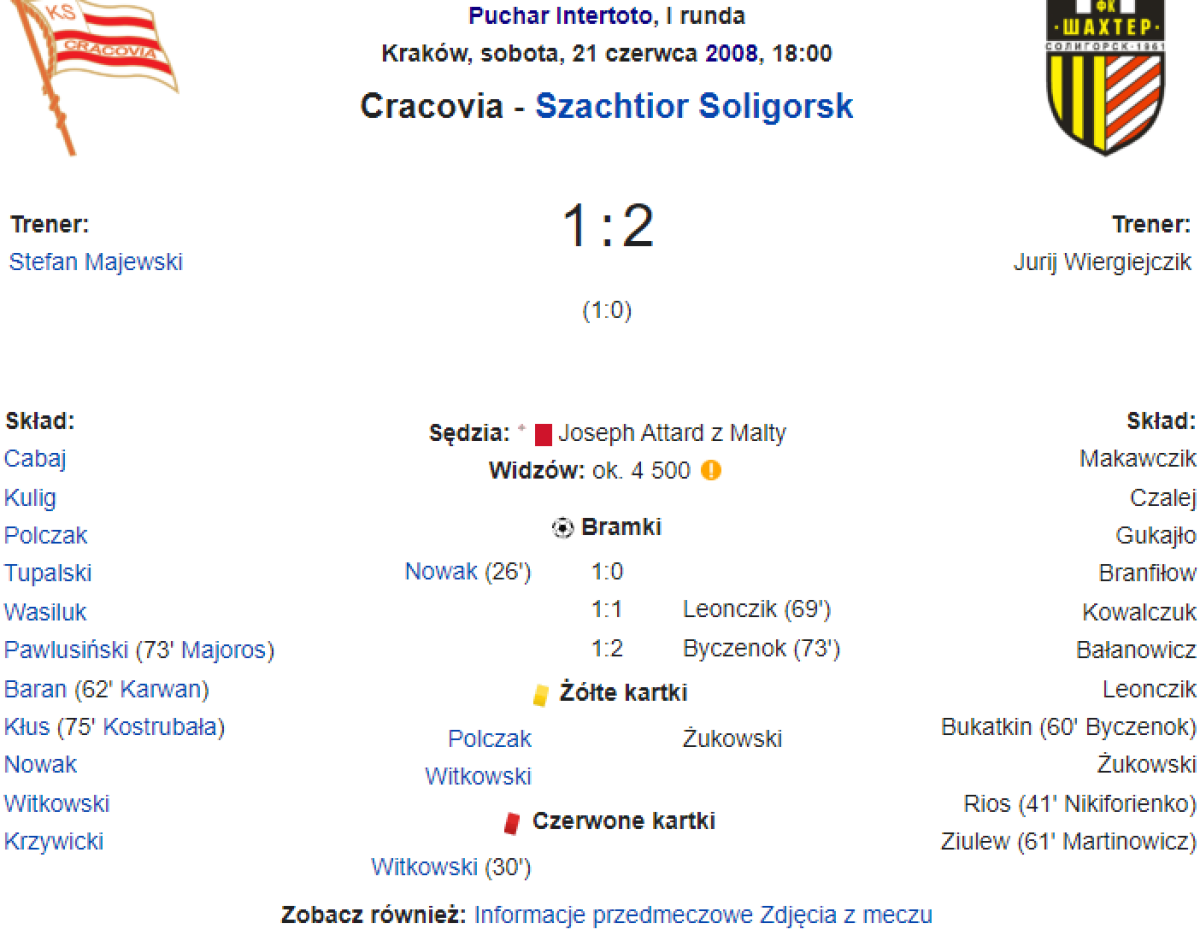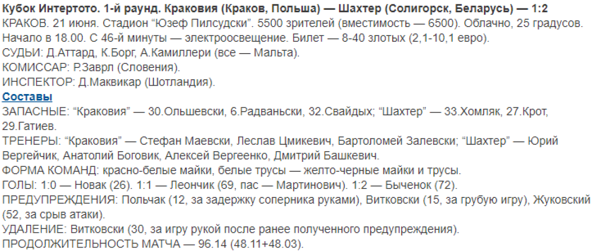 «Краковия» Краков - «Шахтёр» Солигорск - 1:2