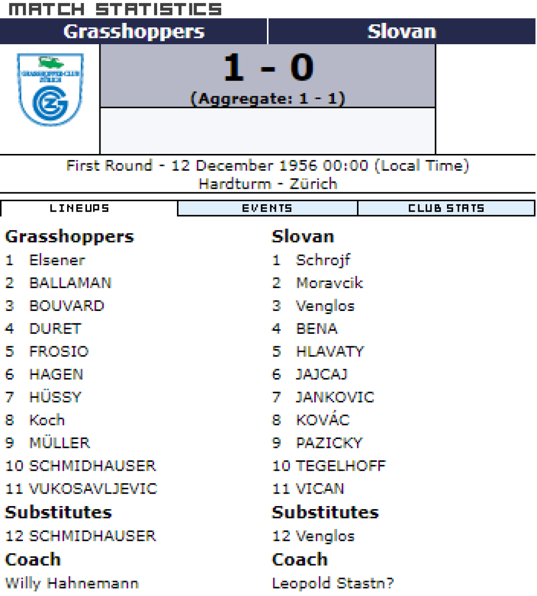 «Грассхоппер» Цюрих - «УНВ-Слован» Братислава - 2:0