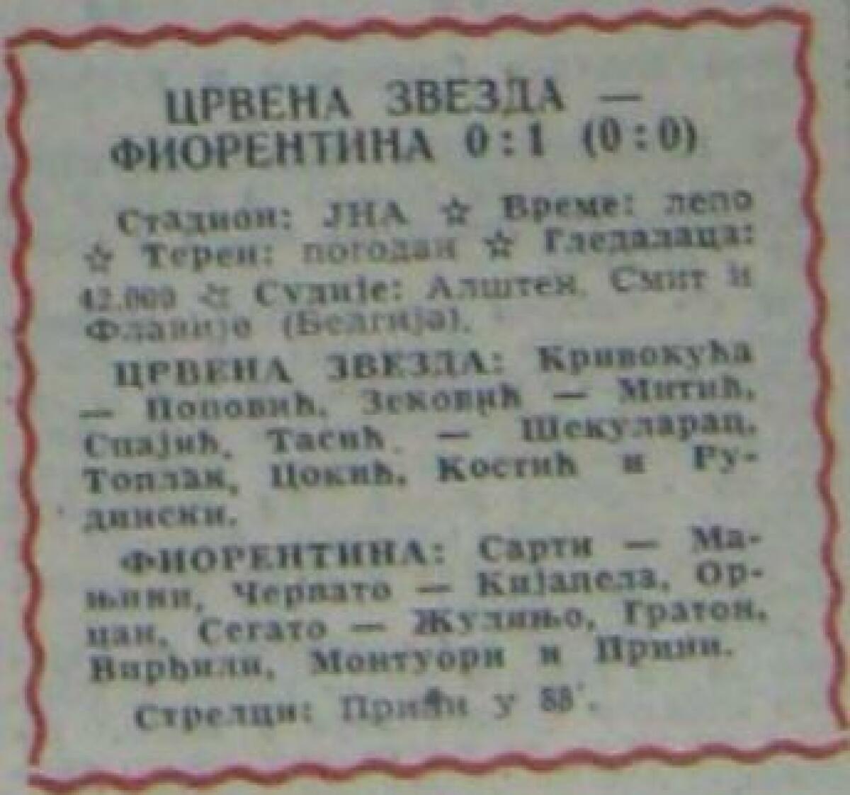 «Црвена Звезда» Белград - «Фиорентина» Флоренция - 0:1