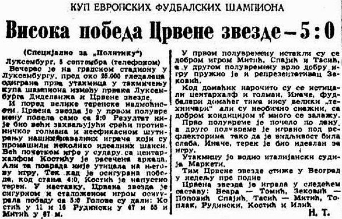 «Стад» Дюделанж - «Црвена Звезда» Белград - 0:5