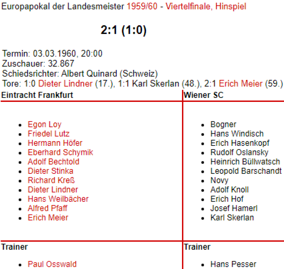 «Айнтрахт» Франкфурт-на-Майне - «Винер Шпорт-Клуб» Вена - 2:1