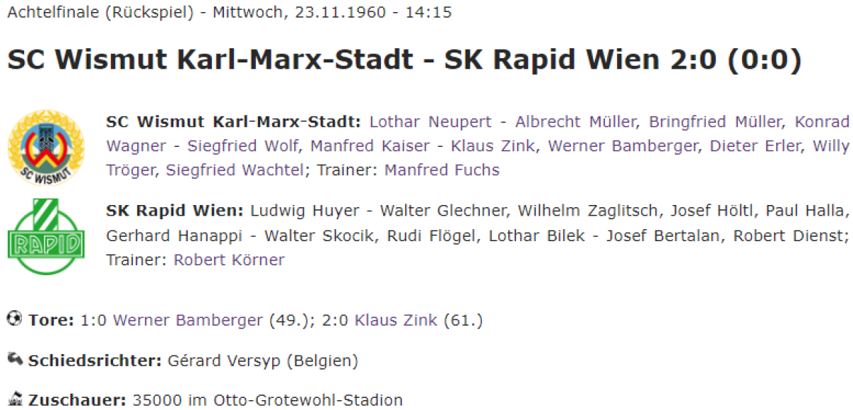 «Висмут» Карл-Маркс-Штадт - «Рапид» Вена - 2:0