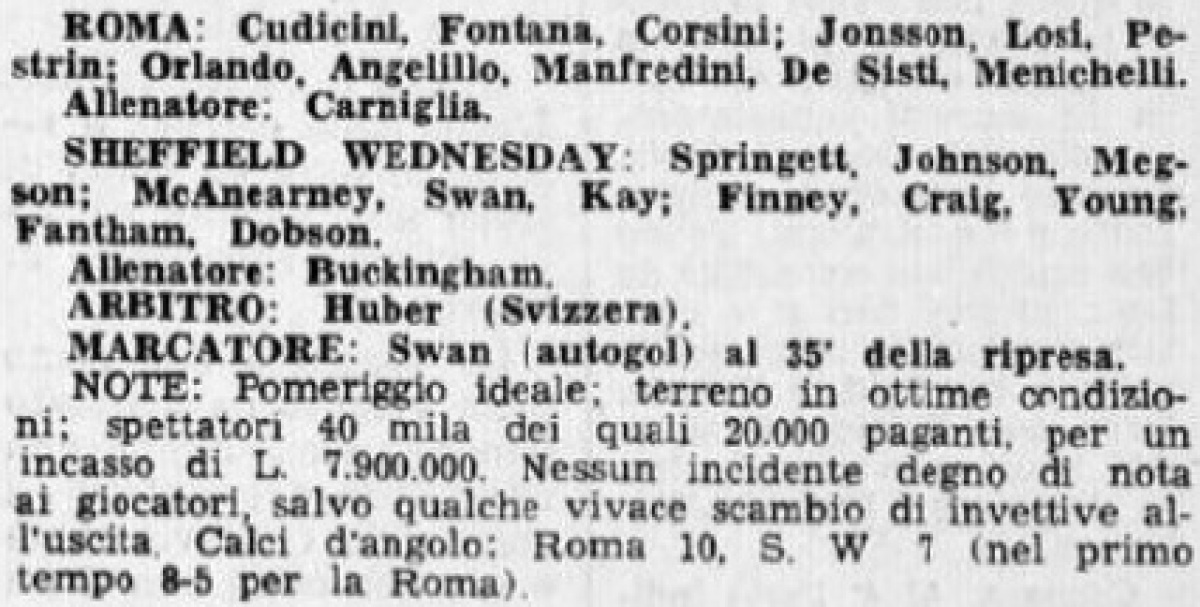 «Рома» Рим - «Шеффилд Уэнсдей» Шеффилд - 1:0