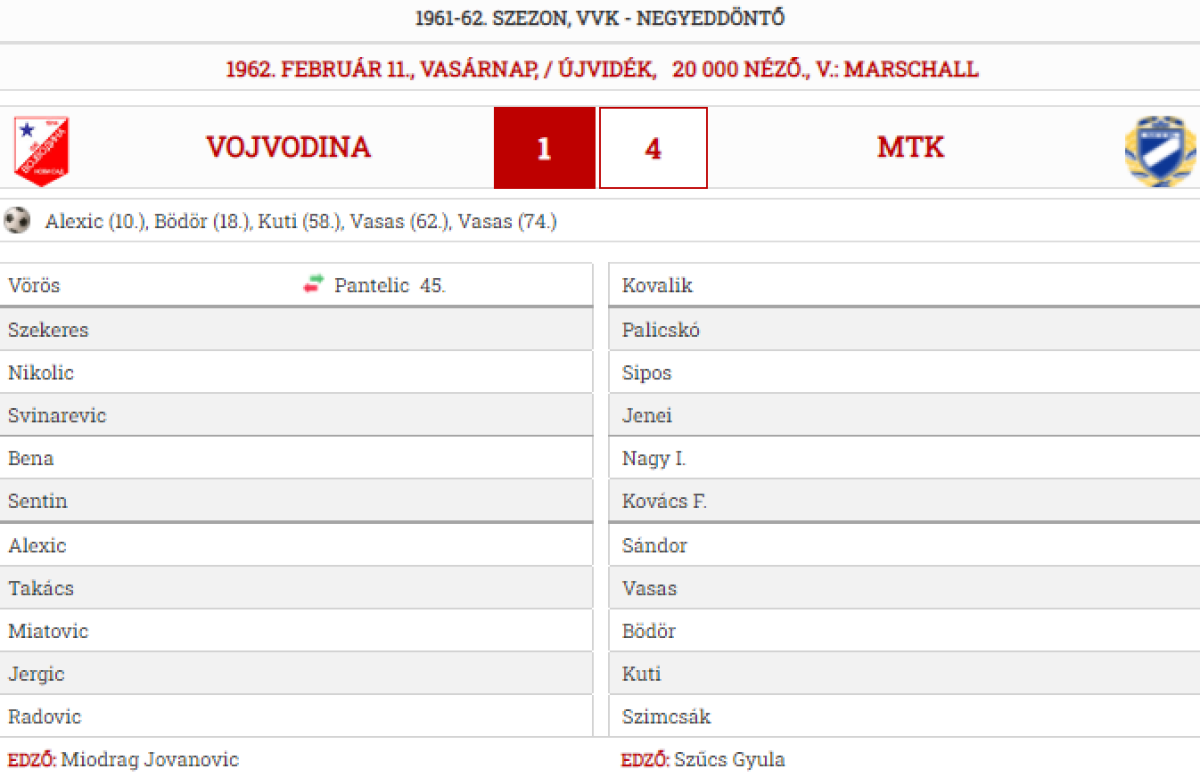 Нови-Сад - МТК Будапешт - 1:4
