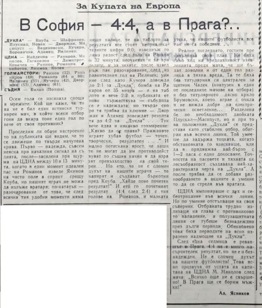 ЦДНА София - «Дукла» Прага - 4:4