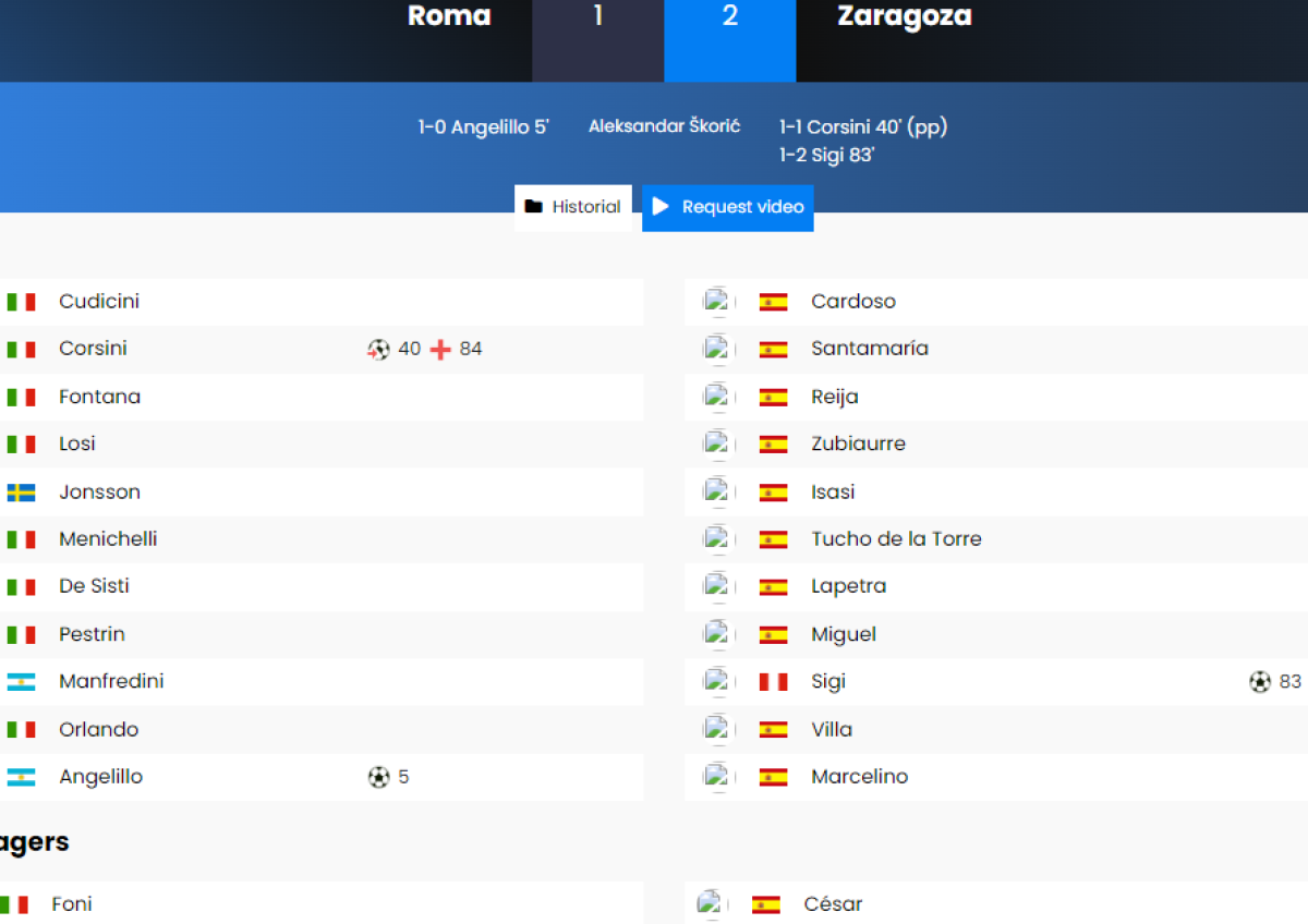«Рома» Рим - «Реал Сарагоса» Сарагоса - 1:2