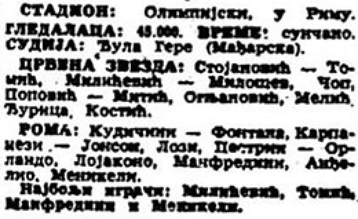 «Рома» Рим - «Црвена Звезда» Белград - 3:0