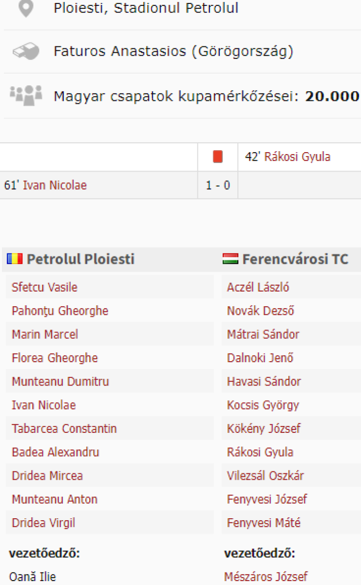 «Петролул» Плоешти - «Ференцварош» Будапешт - 1:0