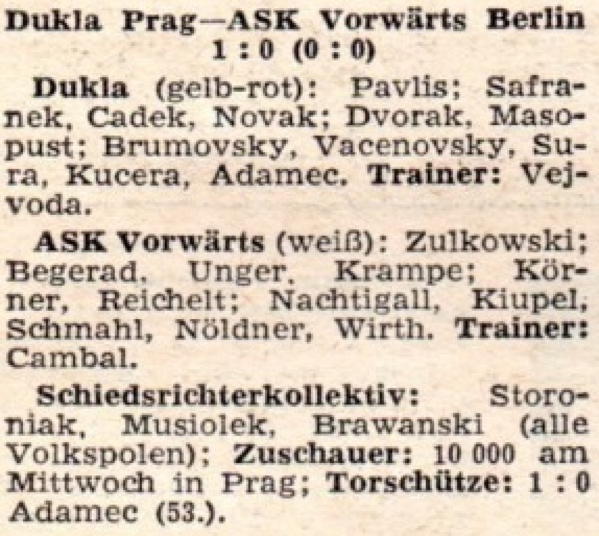 «Дукла» Прага - «Форвёртс» Берлин - 1:0