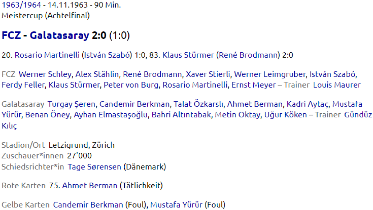 «Цюрих» Цюрих - «Галатасарай» Стамбул - 2:0