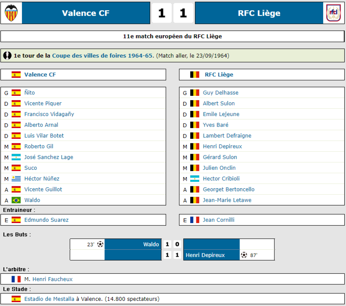 «Валенсия» Валенсия - «Роял Льежес» Льеж - 1:1