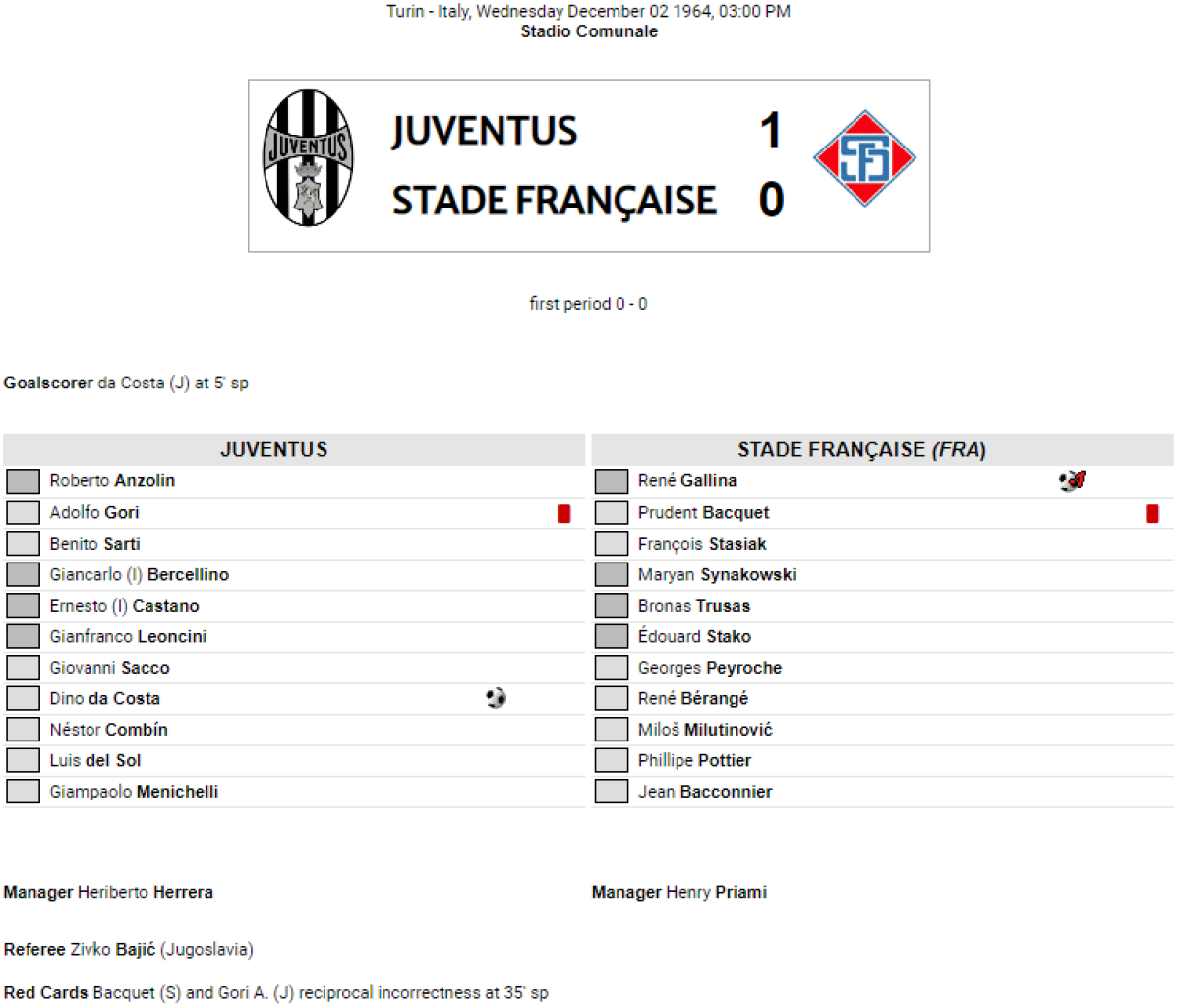 «Ювентус» Турин - «Стад Франсе» Париж - 1:0