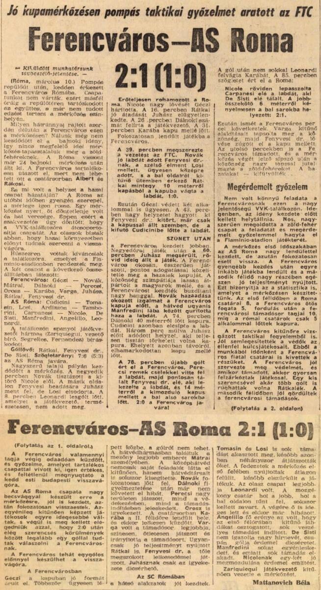 «Рома» Рим - «Ференцварош» Будапешт - 1:2