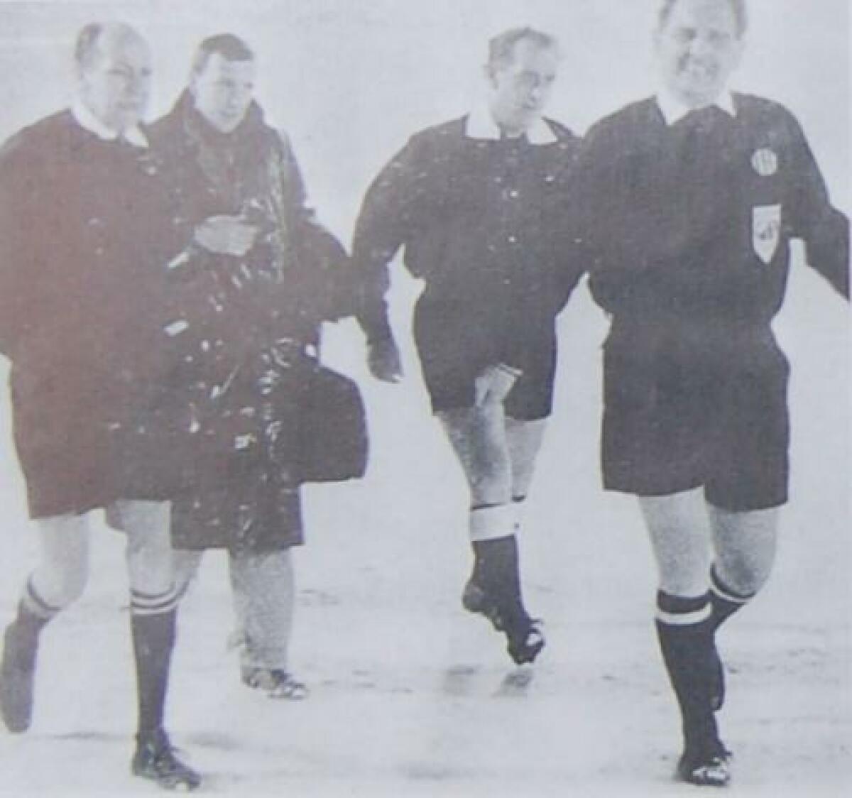 В оригинале этот матч должен был проведён 03 марта 1965. Датская судейская бригада во главе с Фреде Хансеном приняла решение о переносе матча из за выпавшего снега. После обьявления о переносе матча зрители бросились к выходам, где произошла давка и десятки болельщиков были ранены.