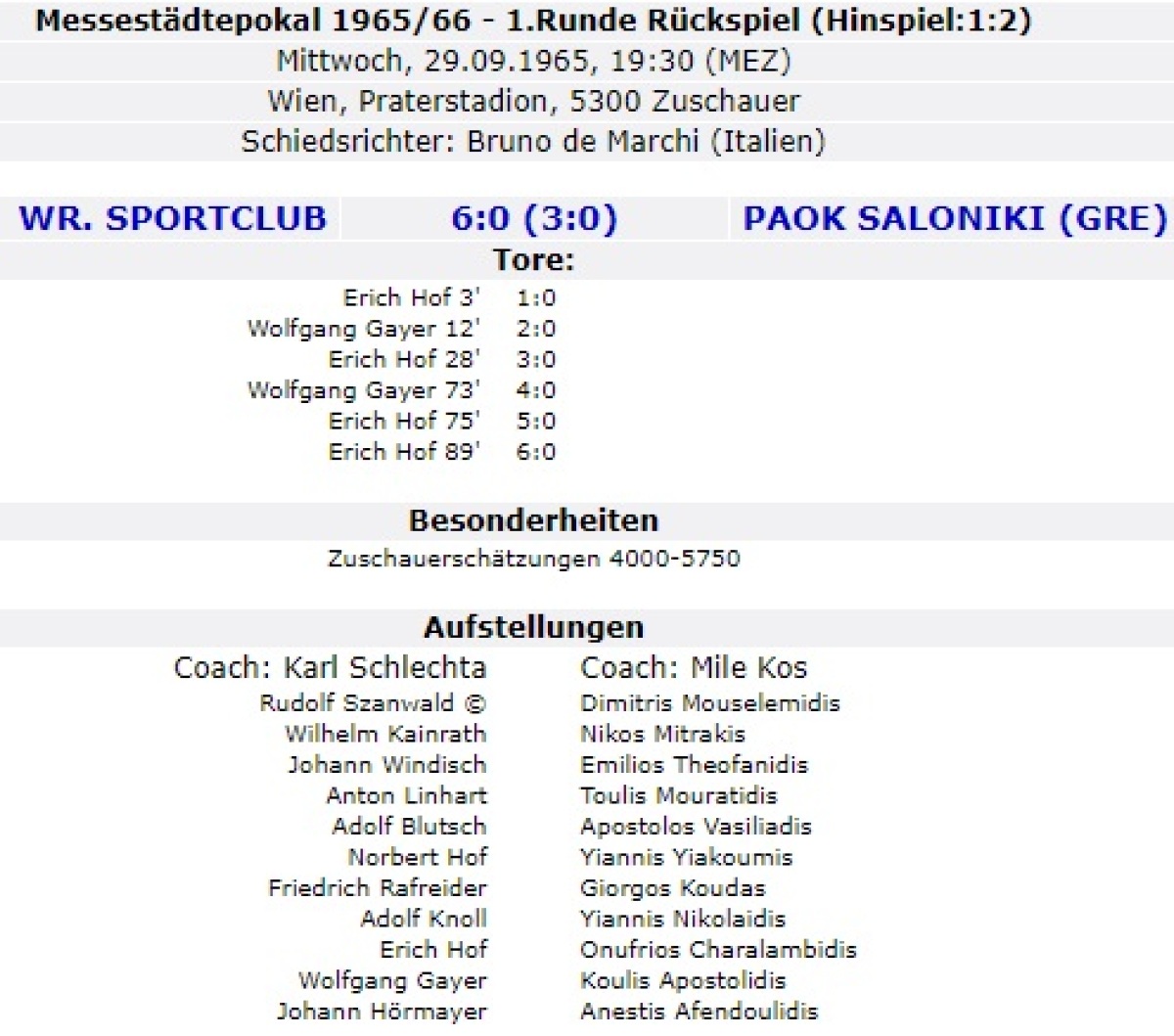«Винер Шпорт-Клуб» Вена - ПАОК Салоники - 6:0