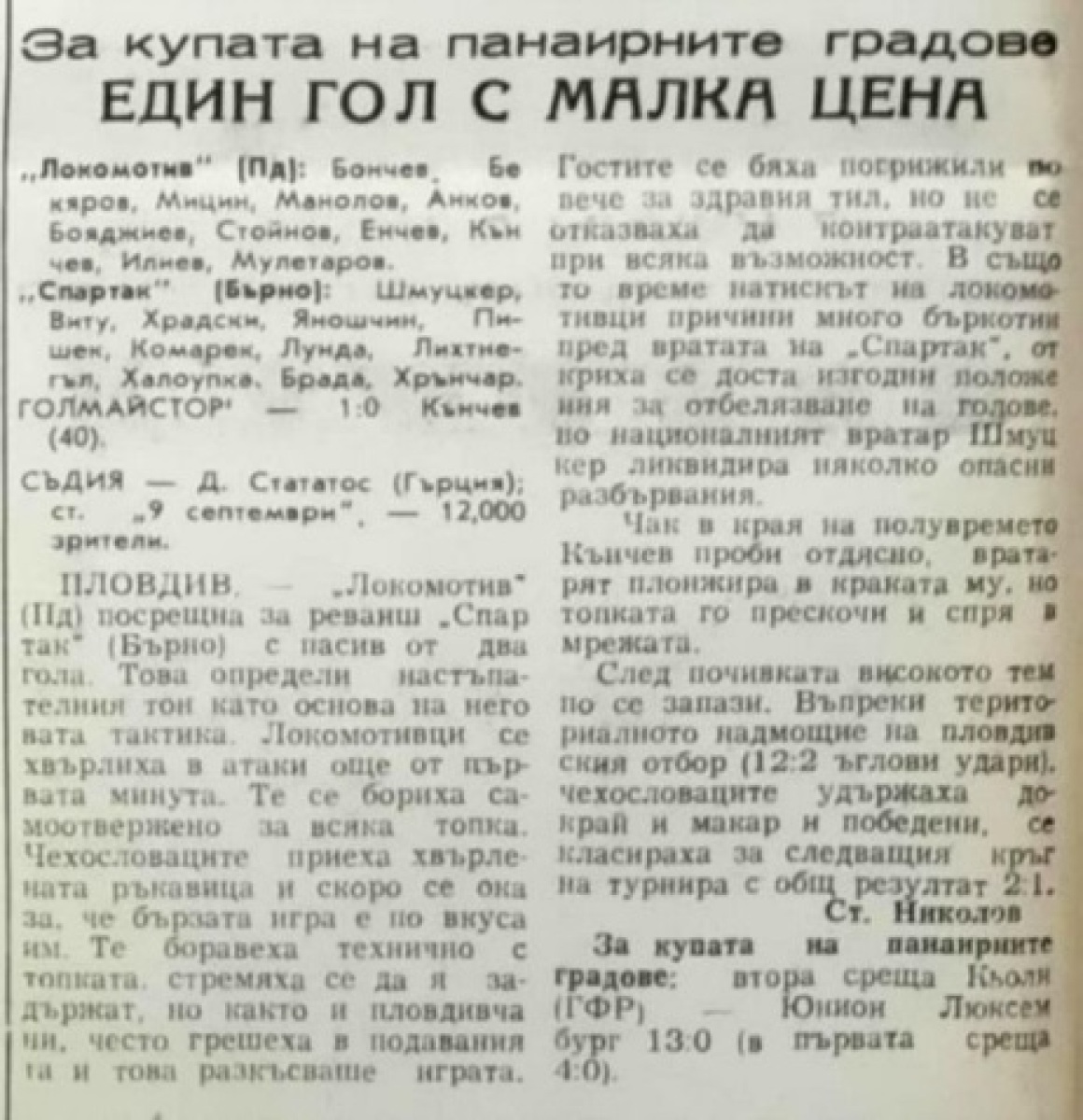 «Локомотив» Пловдив - «Спартак» Брно - 1:0