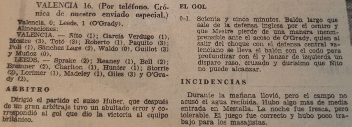 «Валенсия» Валенсия - «Лидс Юнайтед» Лидс - 0:1