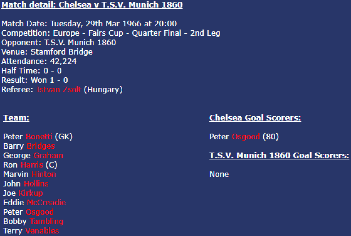 «Челси» Лондон - «Мюнхен-1860» Мюнхен - 1:0