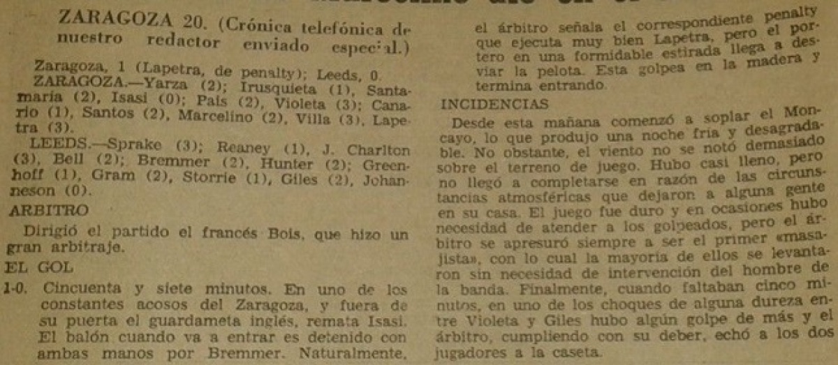 «Реал Сарагоса» Сарагоса - «Лидс Юнайтед» Лидс - 1:0