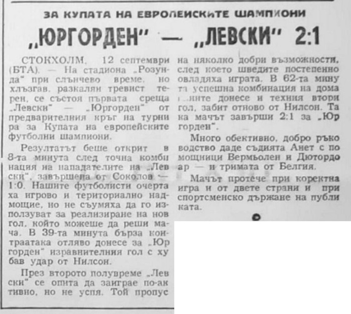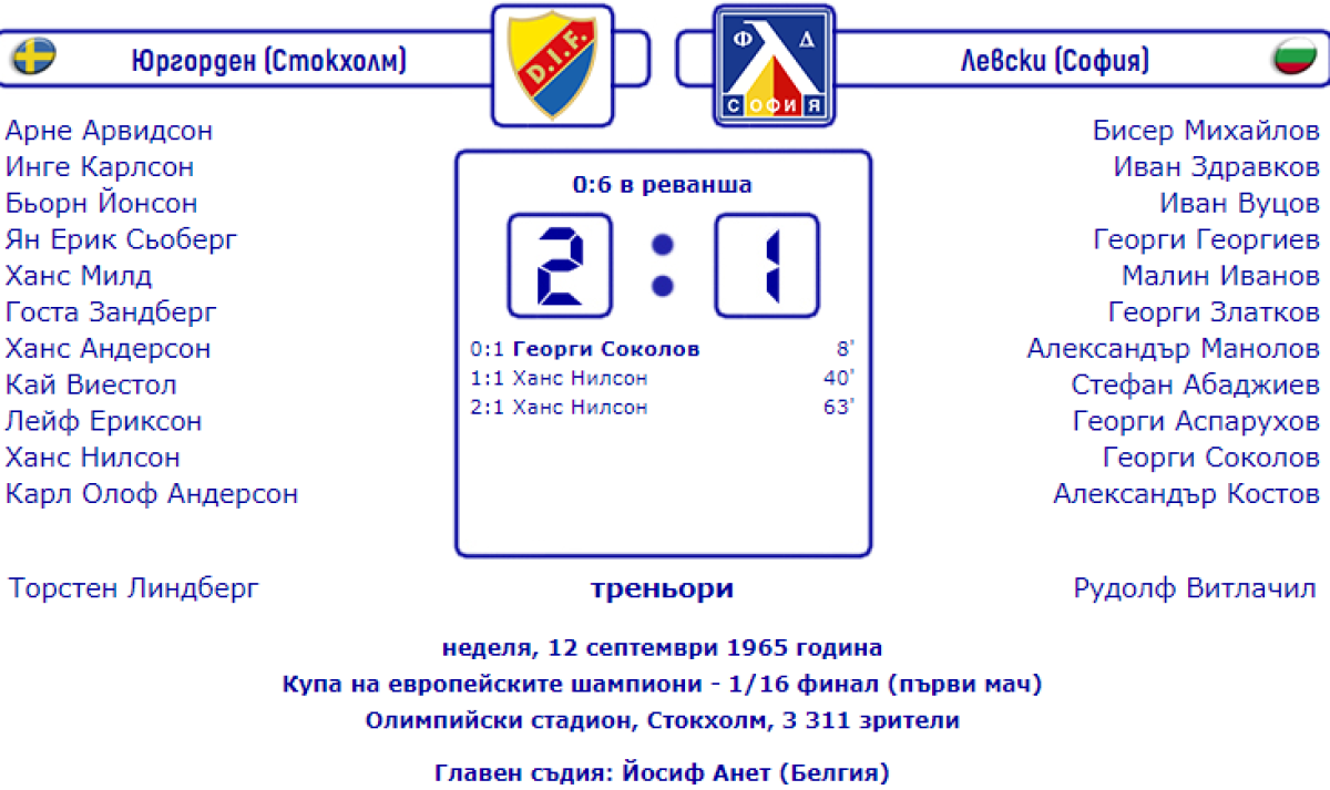 «Юргорден» Стокгольм - «Левски» София - 2:1