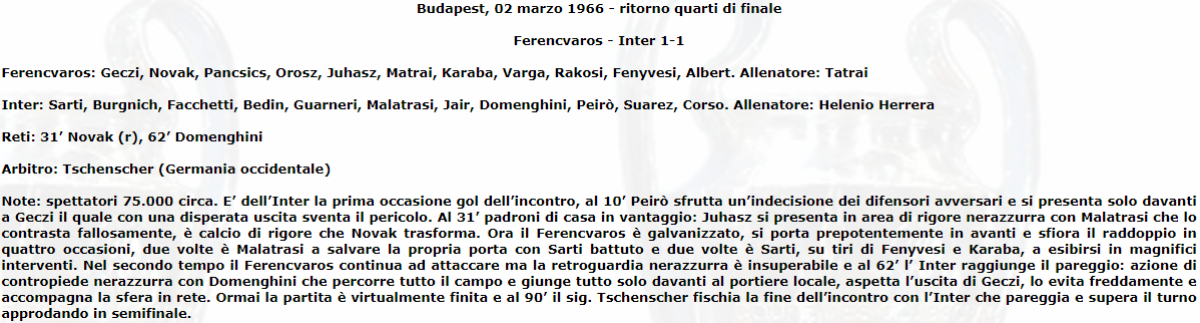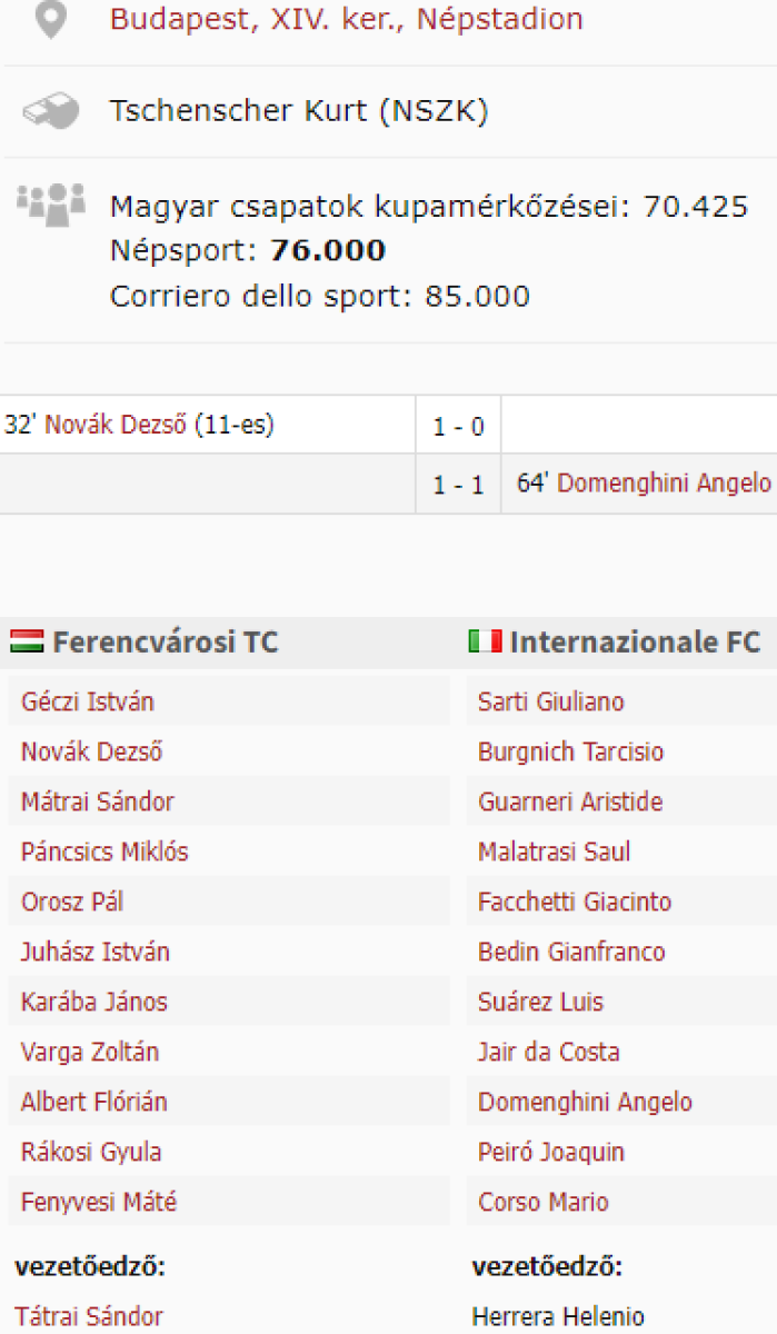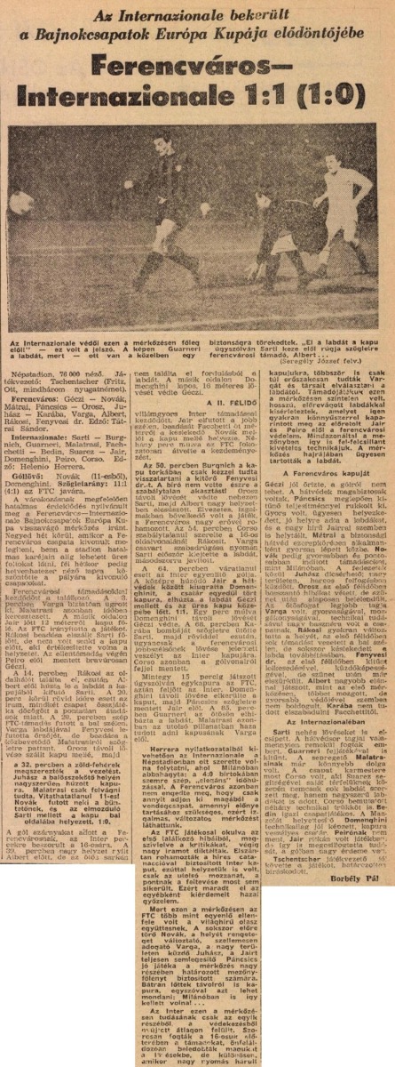 «Ференцварош» Будапешт - «Интернационале» Милан - 1:1
