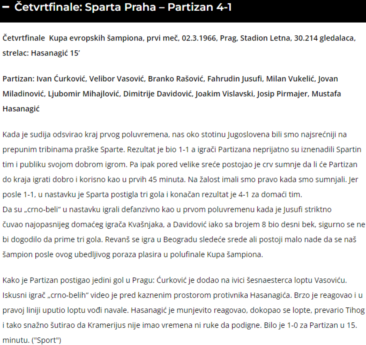 «Спарта» Прага - «Партизан» Белград - 4:1