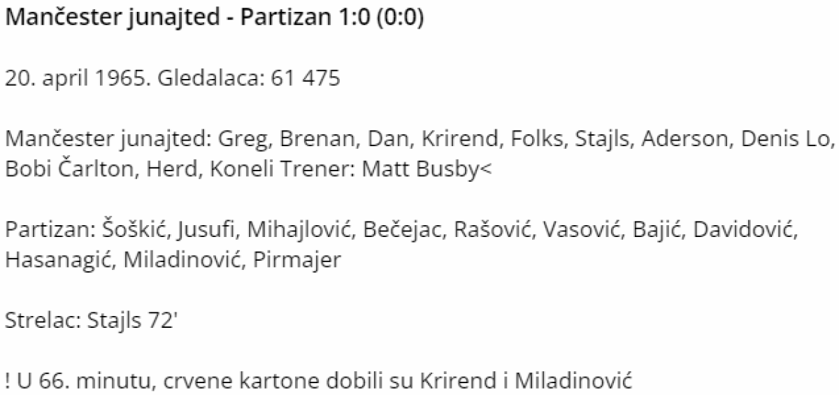 «Манчестер Юнайтед» Манчестер - «Партизан» Белград - 1:0