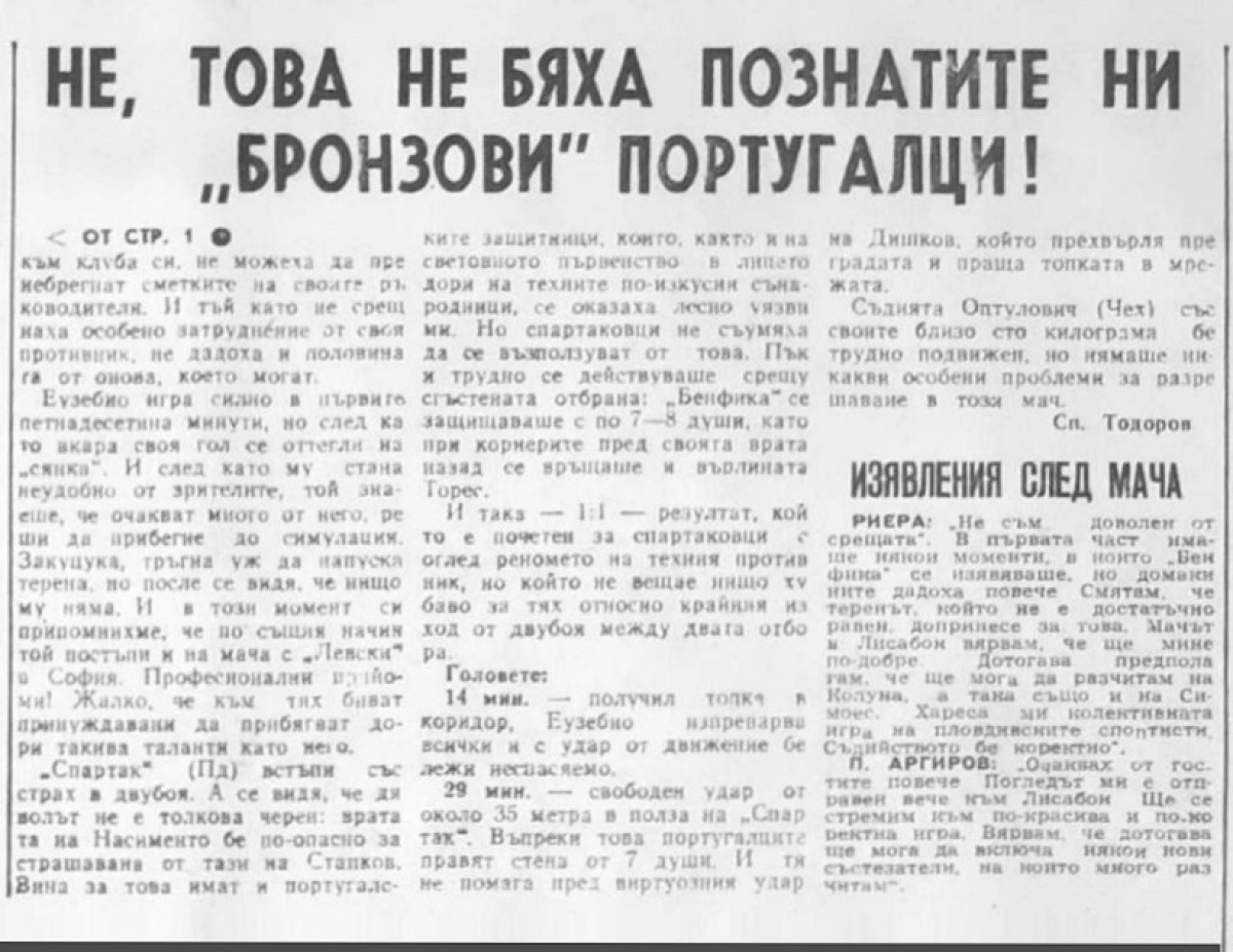 «Спартак» Пловдив - «Бенфика» Лиссабон - 1:1