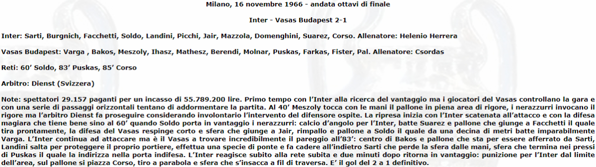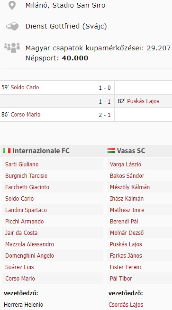 «Интернационале» Милан - «Вашаш» Будапешт - 2:1