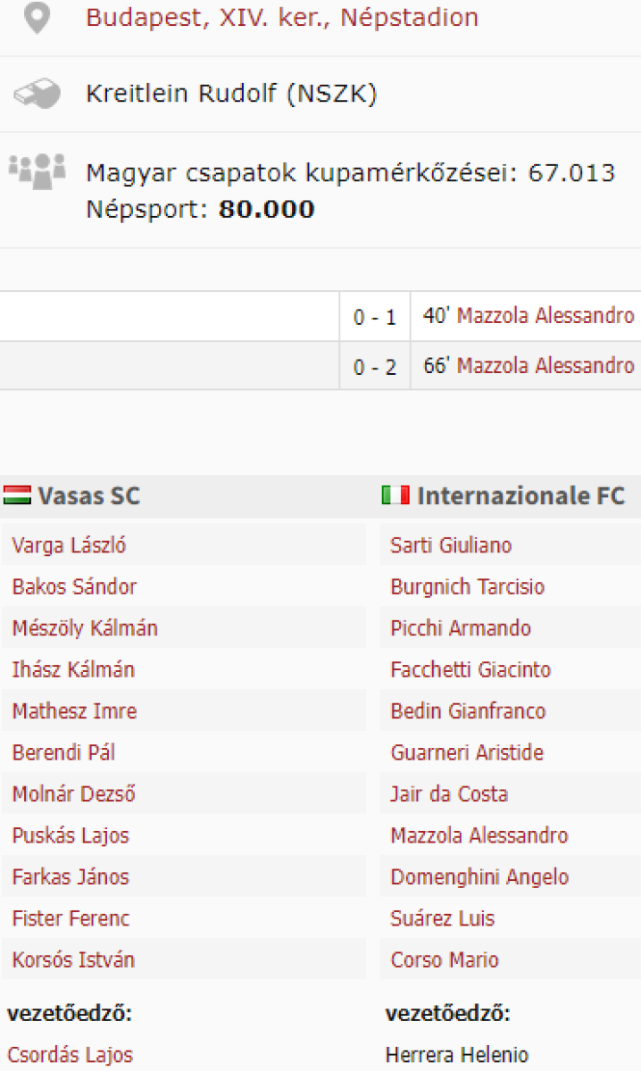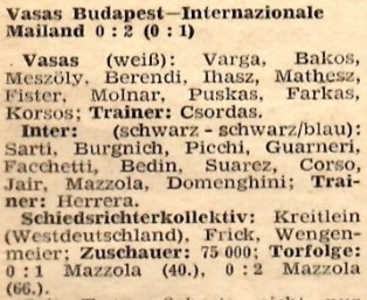 «Вашаш» Будапешт - «Интернационале» Милан - 0:2