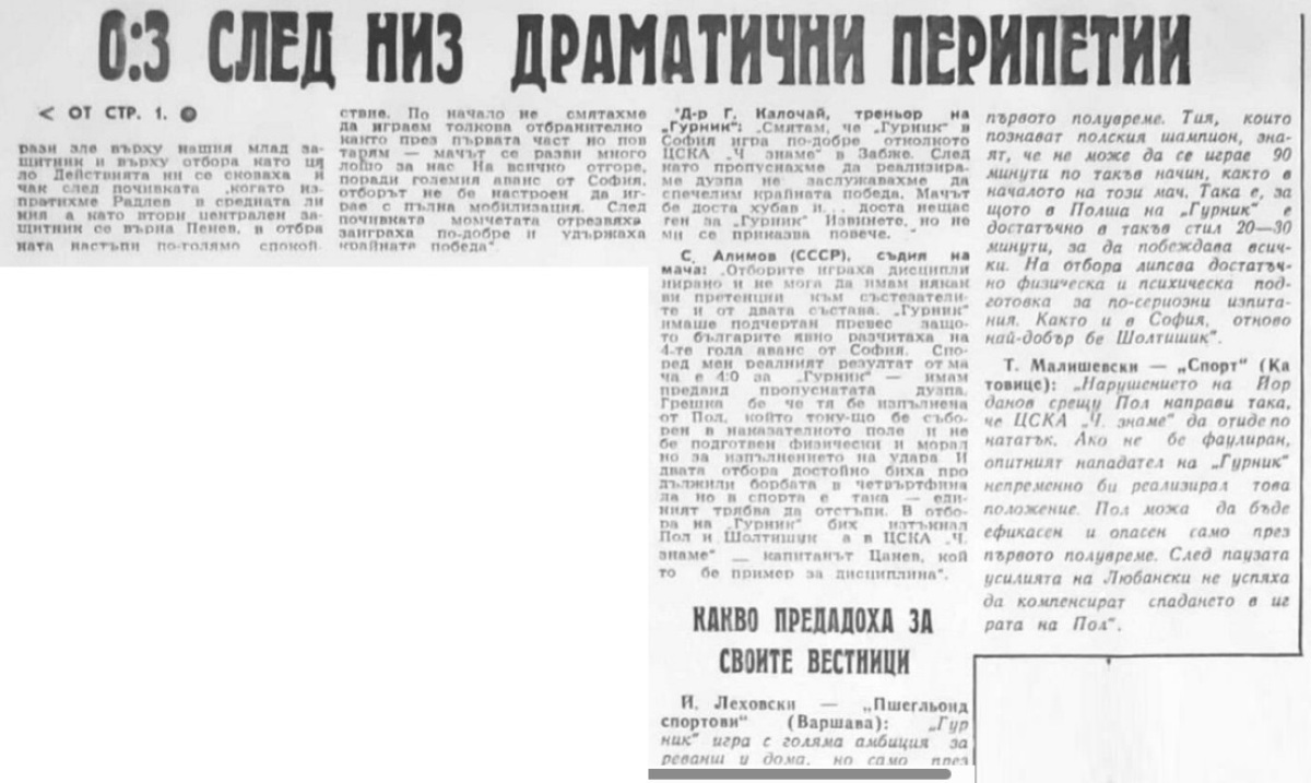 «Гурник» Забже - «ЦСКА Червено Знаме» София - 3:0
